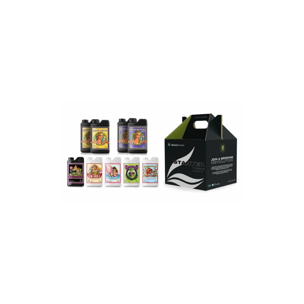Lo starter kit include la Base A+B SENSI e cinque booster essenziali: Voodoo Juice, B-52, Bud Candy, Big Bud e Overdrive. La base è utilizzabile sia nella fase vegetativa che in quella di fioritura, durante la quale si aggiungono i booster per migliorare la resa in aroma, sapore e consistenza. Il Voodoo Juice favorisce l'assorbimento di nutrienti grazie ai microbi presenti. Il B-52 fornisce vitamine del gruppo B necessarie per la pianta. Il Bud Candy, a base di melasse, potenzia aroma e sapore. Il Big Bud, ricco di potassio e fosforo, ingrandisce fiori e frutti. Infine, l'Overdrive massimizza la produzione, anche se la fioritura viene prolungata.